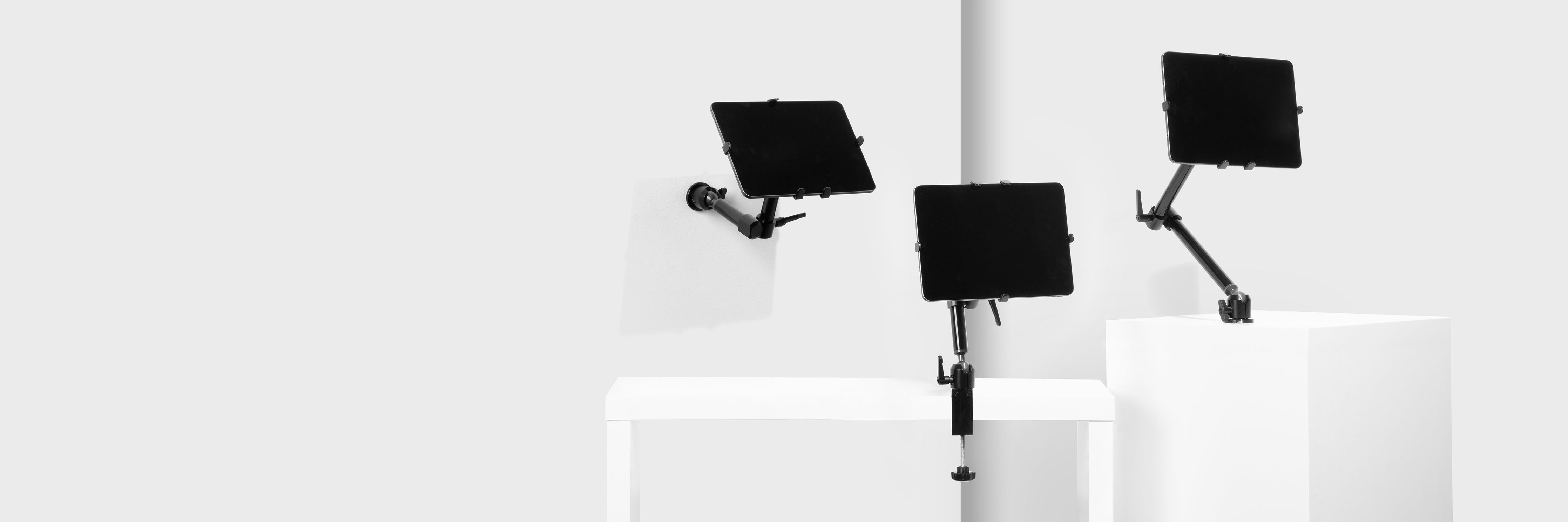 Our comprehensive range of universal tablet stands. Core Range re-purposes the extensive range of mounts from the Original Range, exchanging the classic tablet enclosure with a 3M adhesive mounting system, to display your tablet in all its glory.