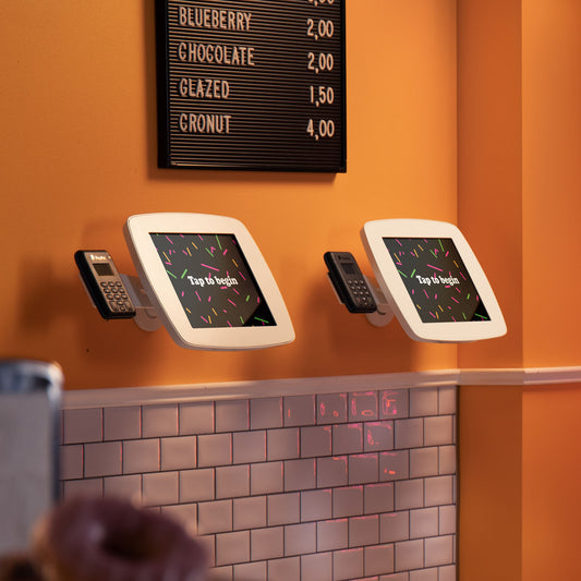 Bouncepad Flip - A secure tablet & iPad tablet stand for POS in white.Bouncepad Flip - A secure tablet & iPad tablet stand for POS in black.