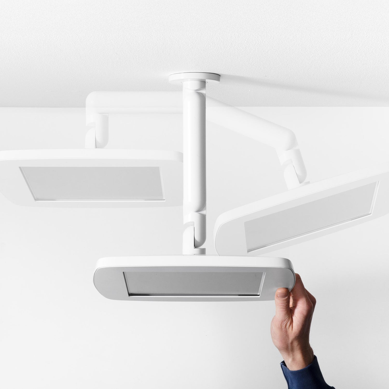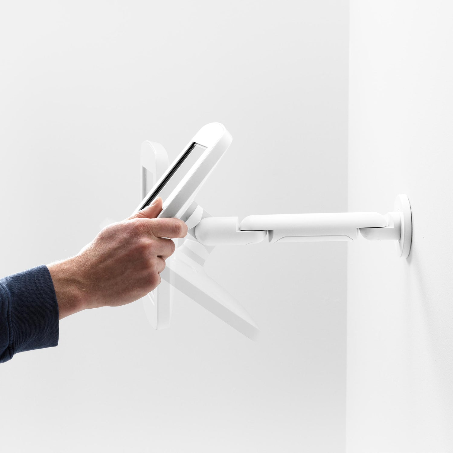 The adjustable arm lets you easily pan, tilt, and extend the tablet to meet user needs, making it easy to interact, no matter the height or angle. When you're done, simply fold it neatly back against the wall to save space.