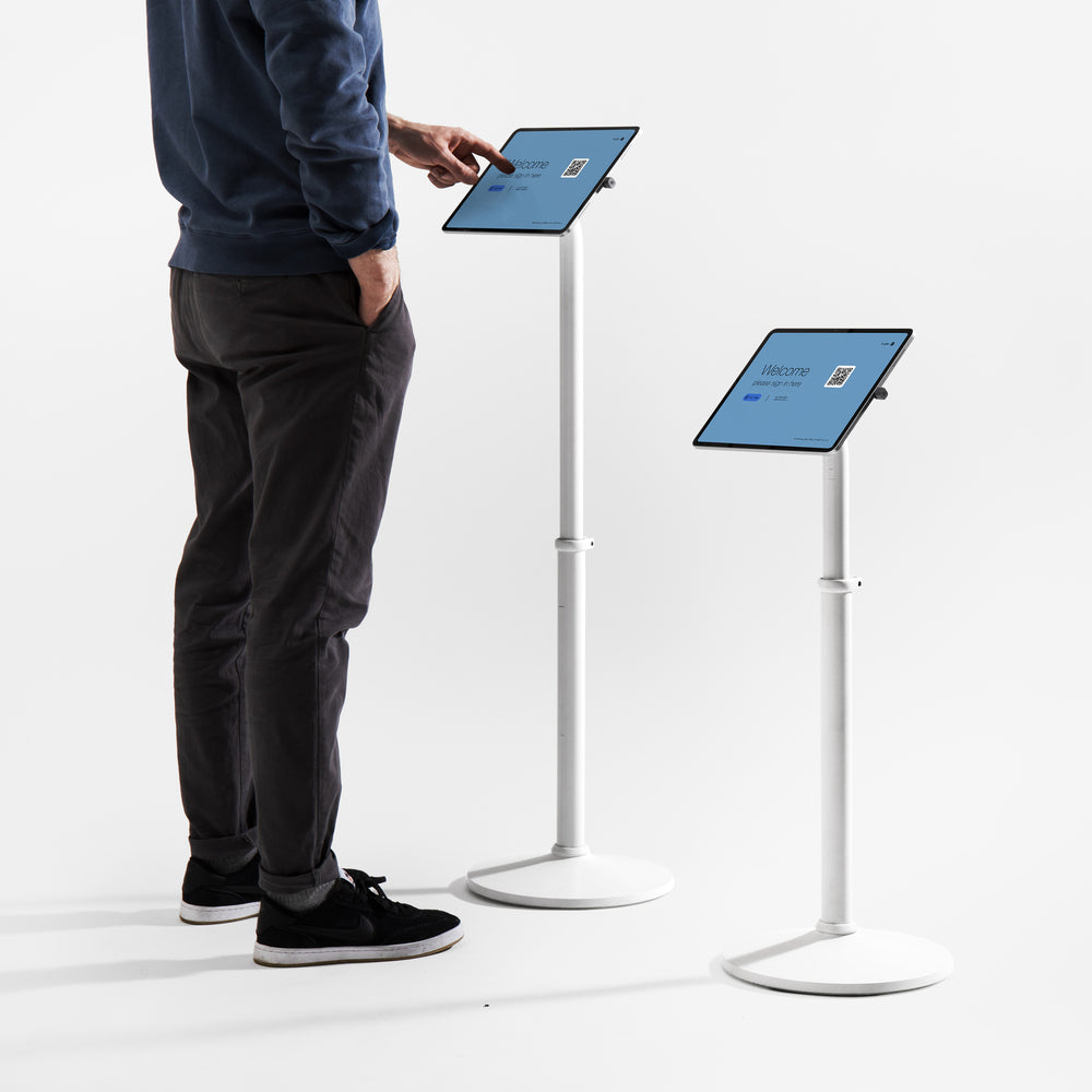 The Bouncepad Core Elevate is a sleek, height-adjustable (from 79cm to 118cm to the center of the screen) tablet floor stand designed for modern, interactive spaces. Ideal for retail, hospitality, and business use, it offers a minimalist design with universal tablet compatibility. Set the height during installation for standing or seated interactions.
