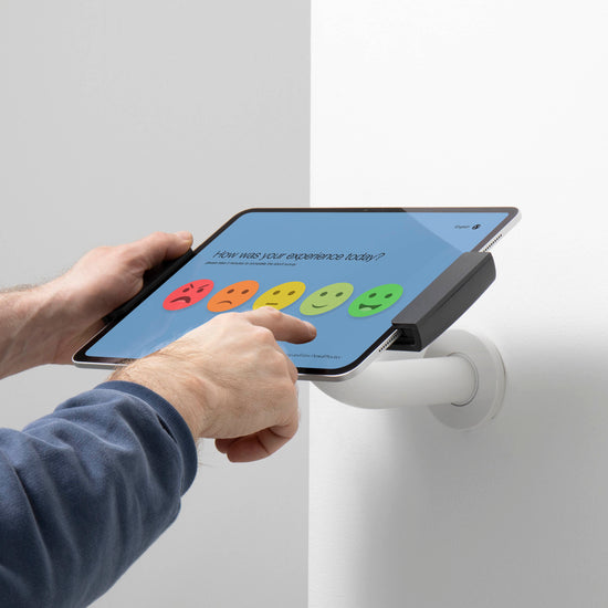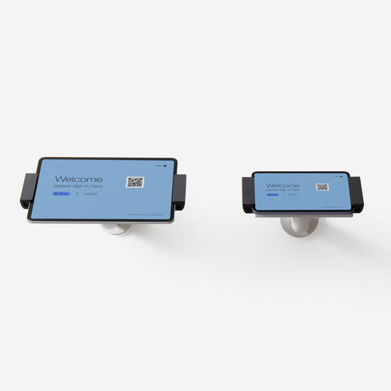 Compatible with most 8–13 inch tablets, including USB-C iPads, the Clip system is suitable for visitor management, staff management, and information display applications. The open jaw design keeps buttons and cameras accessible for the most popular tablets.