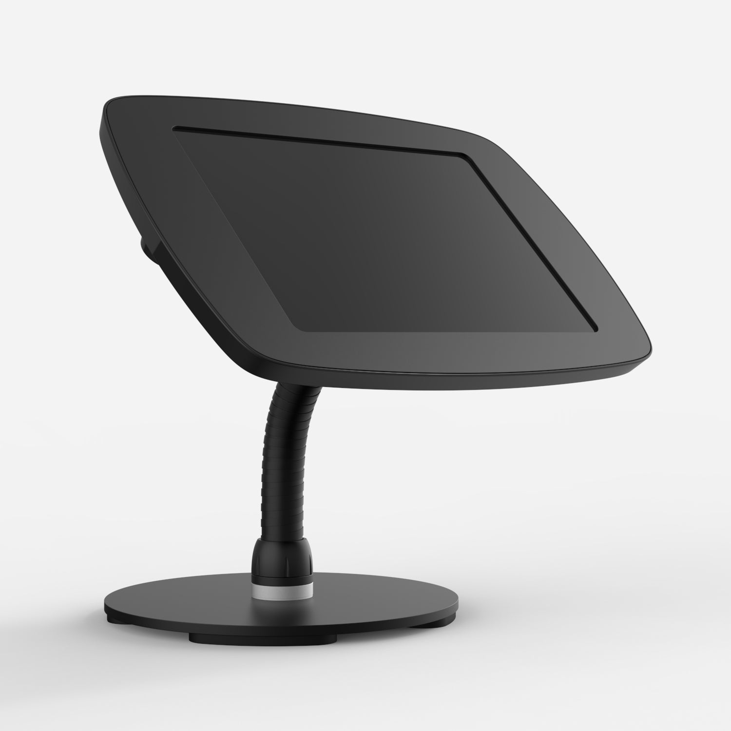 • Bouncepad Counter Flex - A secure tablet & iPad gooseneck stand in black.