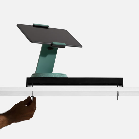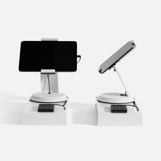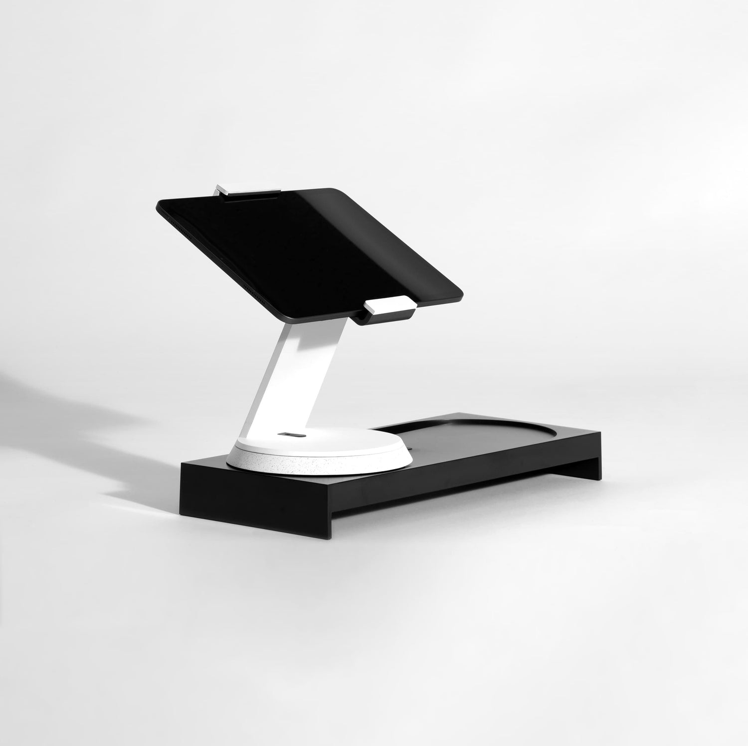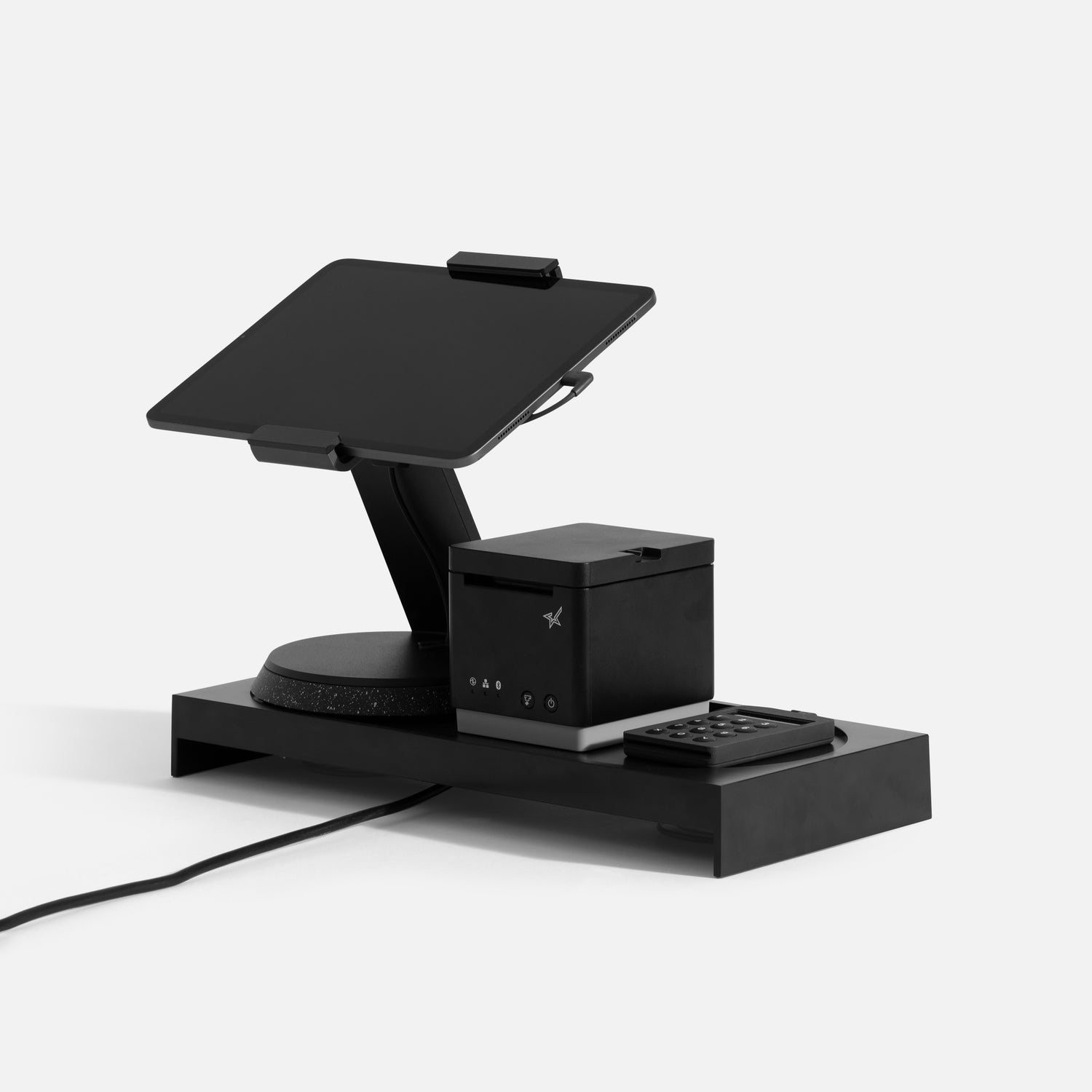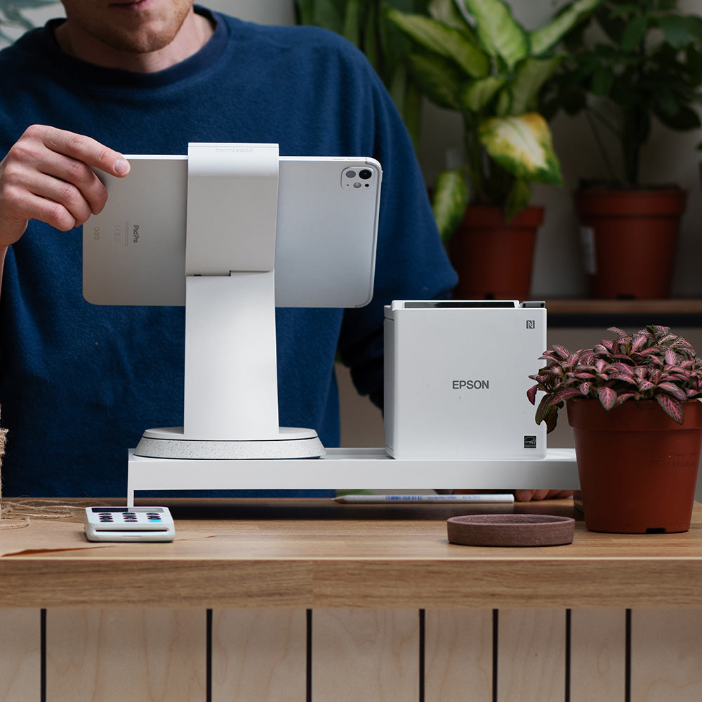 Eddy, our iPad Stand for POS, takes care of your tablet, it's adjustable, secure and manages the cable. Caddy is Eddy's little helper, managing peripheral devices like card readers and receipt printers, keeping their power cables tidy and concealed. It’s the perfect Tablet and iPad stand setup for retail and hospitality.