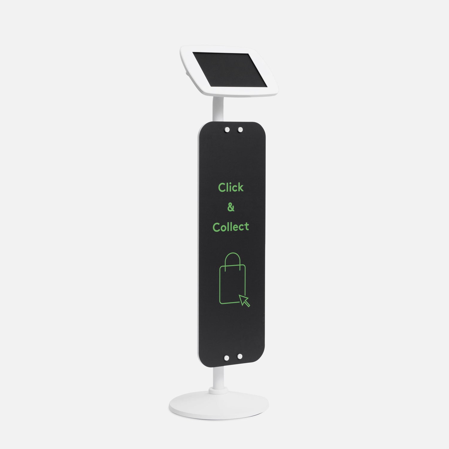 The Bouncepad Original Floorstanding + Front Board is a secure tablet and iPad floor stand with a big branding board that displays your artwork in full colour on a Foamex board to invite users to interact with your application.