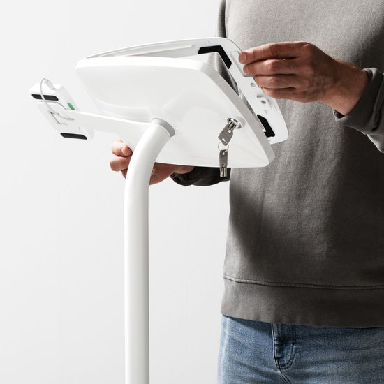 The Bouncepad Original Floorstanding + Card Reader Mount is a secure, robust and elegant tablet and iPad floor stand.