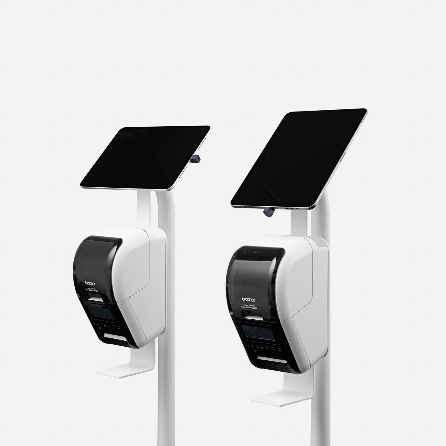 The Bouncepad Core Floorstanding with Brother ® Printer Mount is a secure tablet and iPad floor stand designed for visitor management.