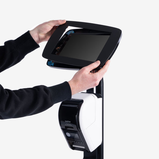 The Bouncepad Original Floorstanding + Brother ® Printer Mount + Tilt Adaptor is our ultimate tablet and iPad floor stand for visitor management.