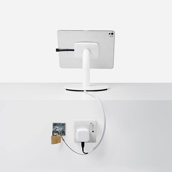 Our Core Range mounting system displays your tablet in all its glory, for a sleek and minimal aesthetic. The large 3M adhesive pad keeps your tablet secure whilst the included 180 degree USB-C power cable keeps your tablet charged. An integrated cable grip stops users removing the power cable, ensuring a charged device at all times. And, depending on your content, you can mount your tablet in portrait or landscape orientations.