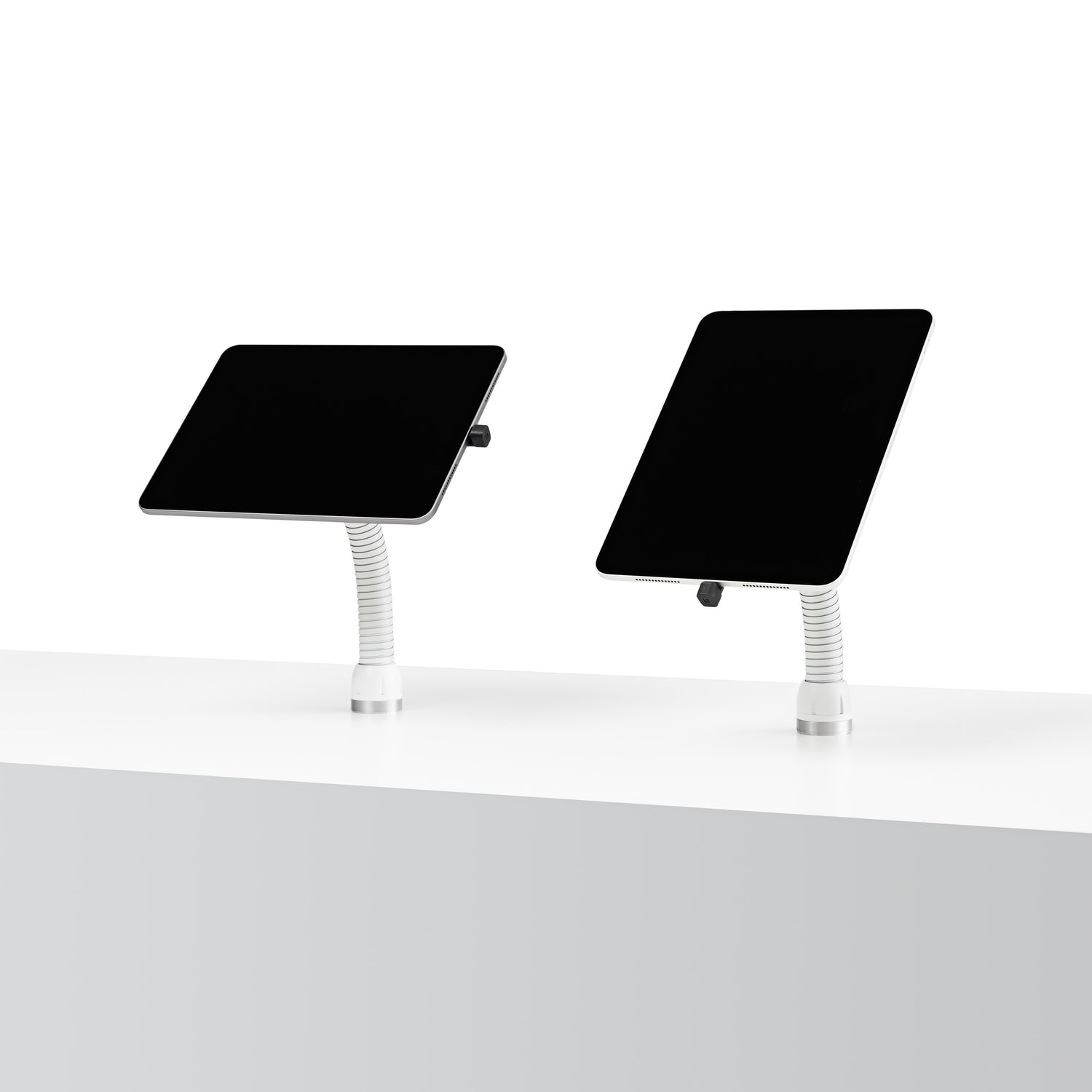 The Bouncepad Core Flex is a secure, adjustable tablet and iPad mount ergonomically designed for easy interaction when mounted to a counter, table or desk. The adjustable gooseneck offers a full range of movement so it can be positioned at the perfect angle for user interaction.