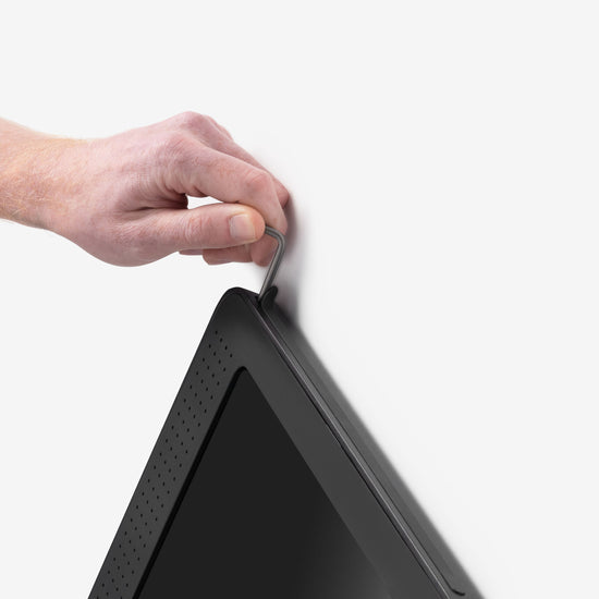 Lock your tablet inside the enclosure using security screws.