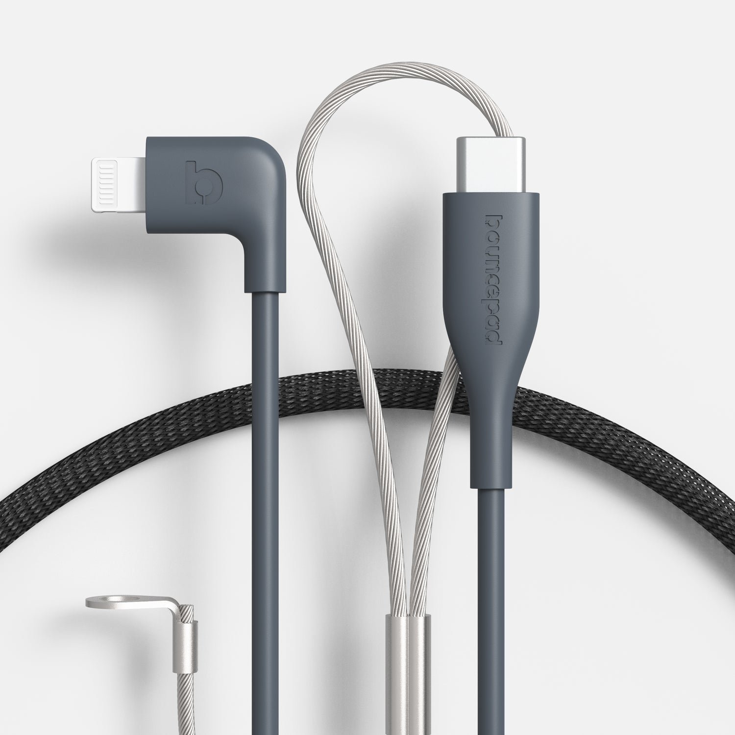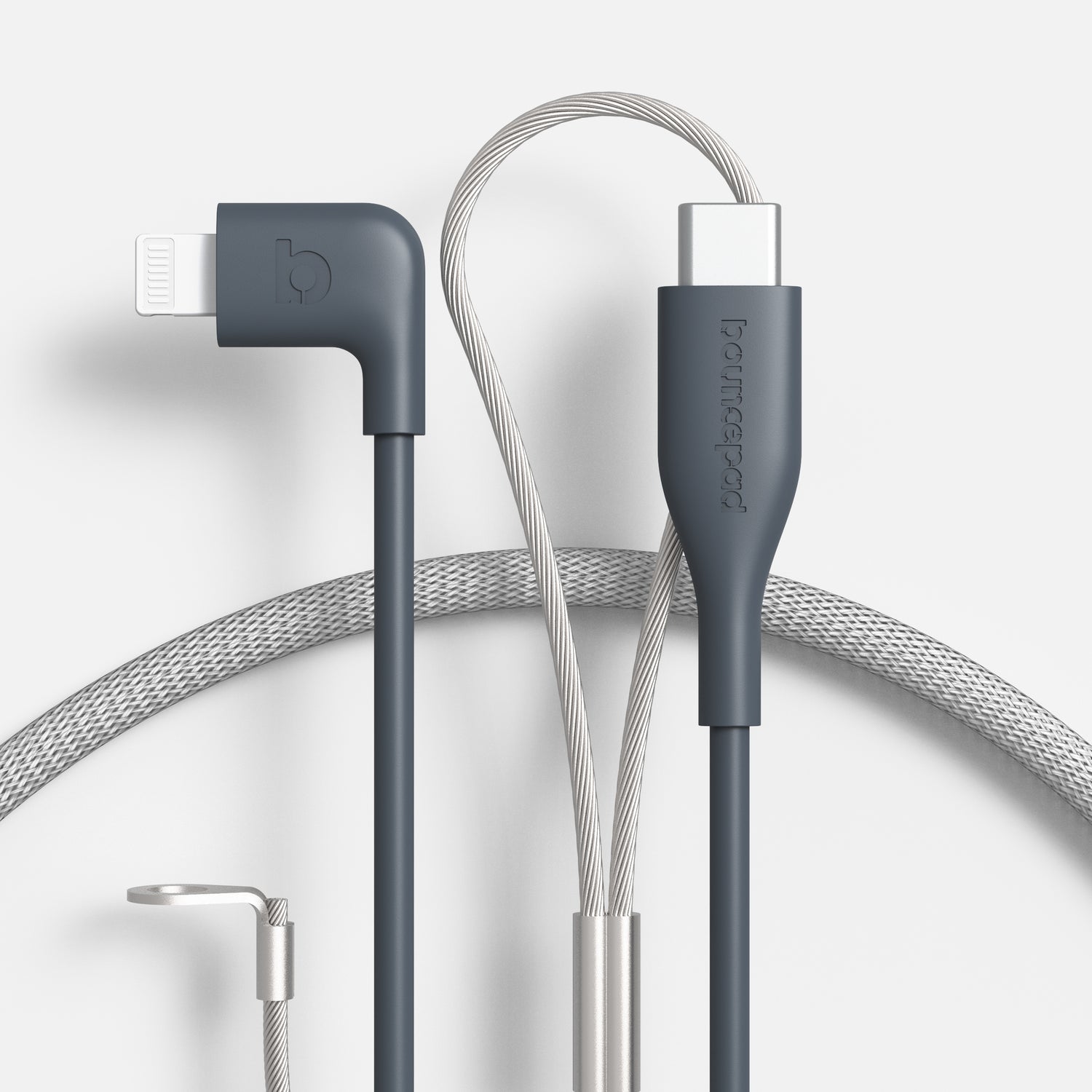 The enclosed right-angled Lightning to USB-C Sync and Charge cable has been specifically designed for optimum fit within Bouncepad products. Perfectly suited to secure the freestanding Counter, Counter 60, Counter Flex and Flip tablet enclosures.