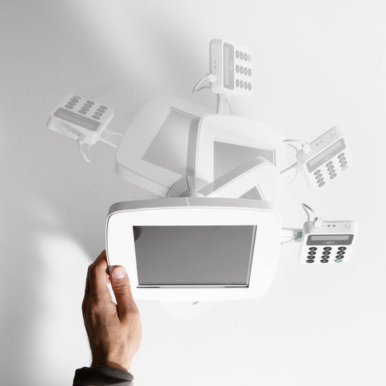 The Bouncepad Original Twist-Mini + Card Reader Mount is a secure, versatile, and stylish tablet and iPad mount designed for high-level counters in customer-facing environments.
