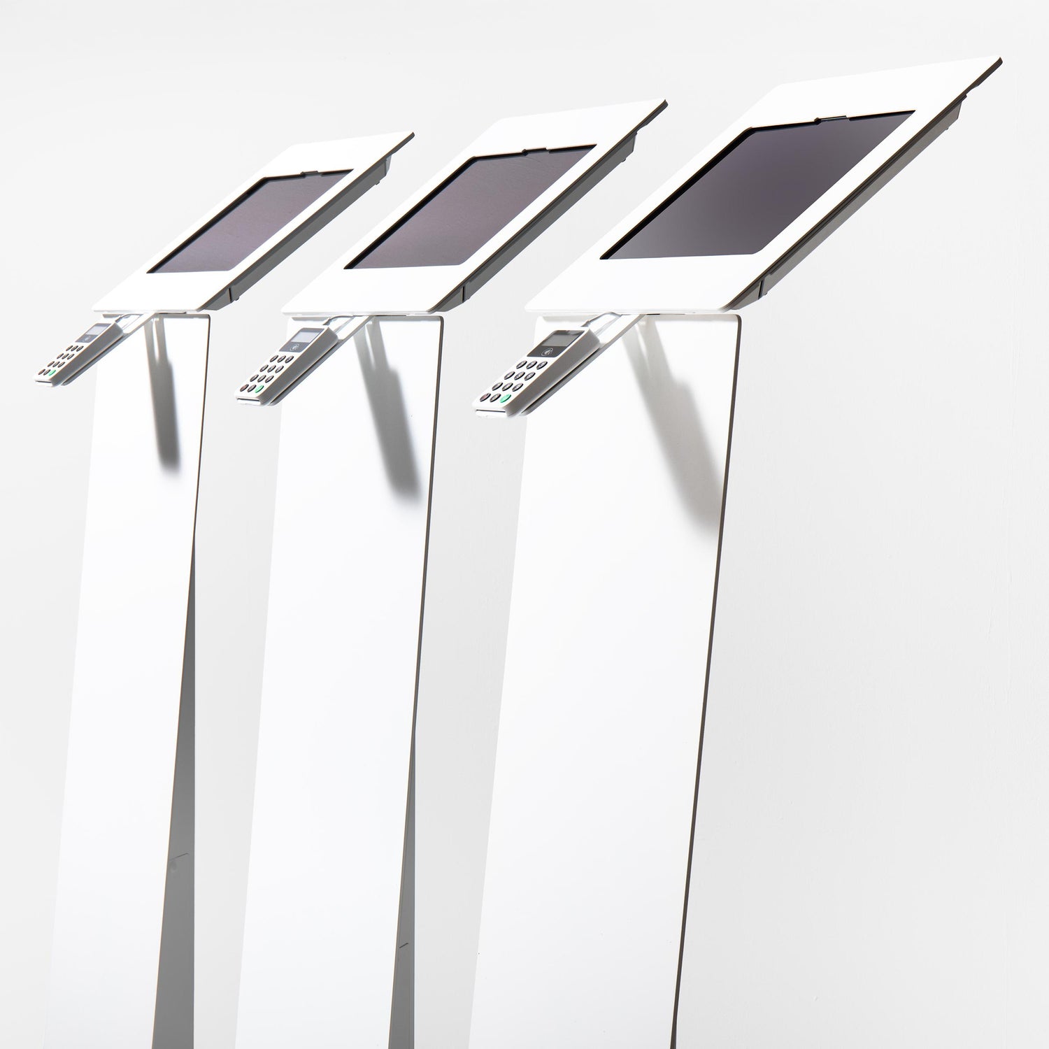 The Wing + Card Reader Mount is a premium, full-metal iPad floor stand from Bouncepad that combines bold design with robust security, integrated power management, and an added mount for your card reader. Ideal for retail, hospitality, and event environments, it transforms your tablet into a complete point-of-sale solution, keeping devices secure, powered, and ready for transactions.