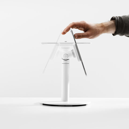 The Core Counter Twist is a freestanding, space-saving tablet and iPad stand, designed for low-level countertops and customer-facing use cases.